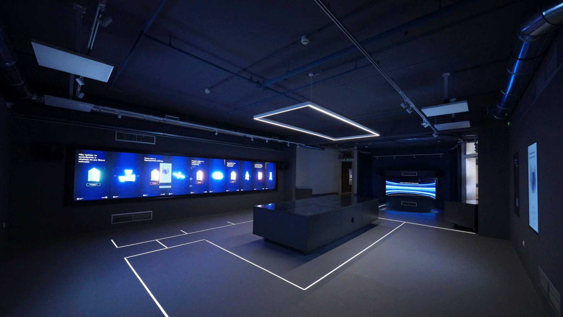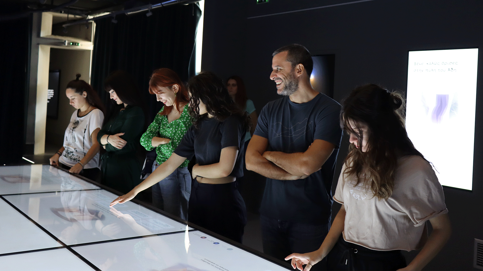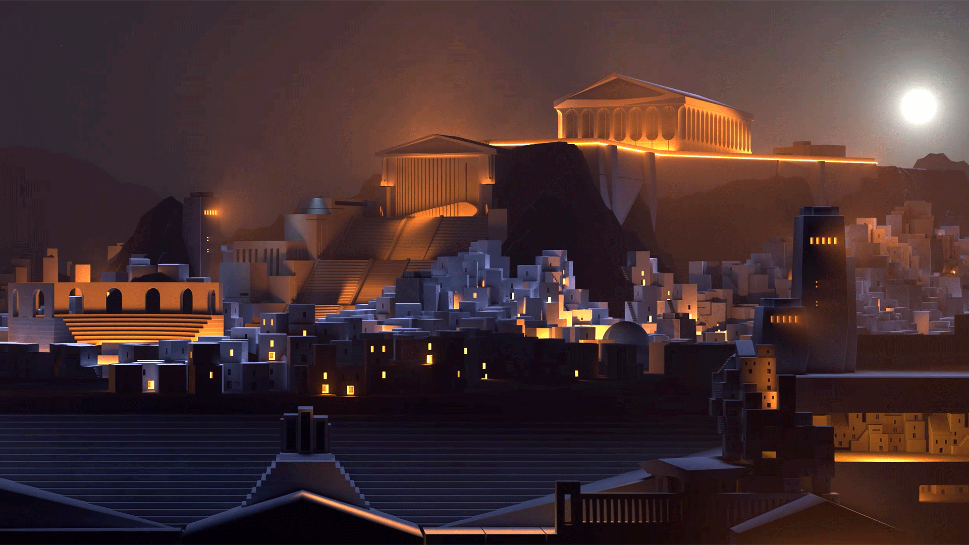 “Democracy & Eudaimonia” is a philosophical interactive exhibition based in Athens Greece, features three interconnected spaces. In the first, the Motivation Space, a 360° animated film (projection) introduces the exhibition’s world. In the Exploration Space, visitors engage with digital exhibits (touch screens) to gain philosophical tools. Finally, in the Space of Reflection, they face a concluding dilemma.