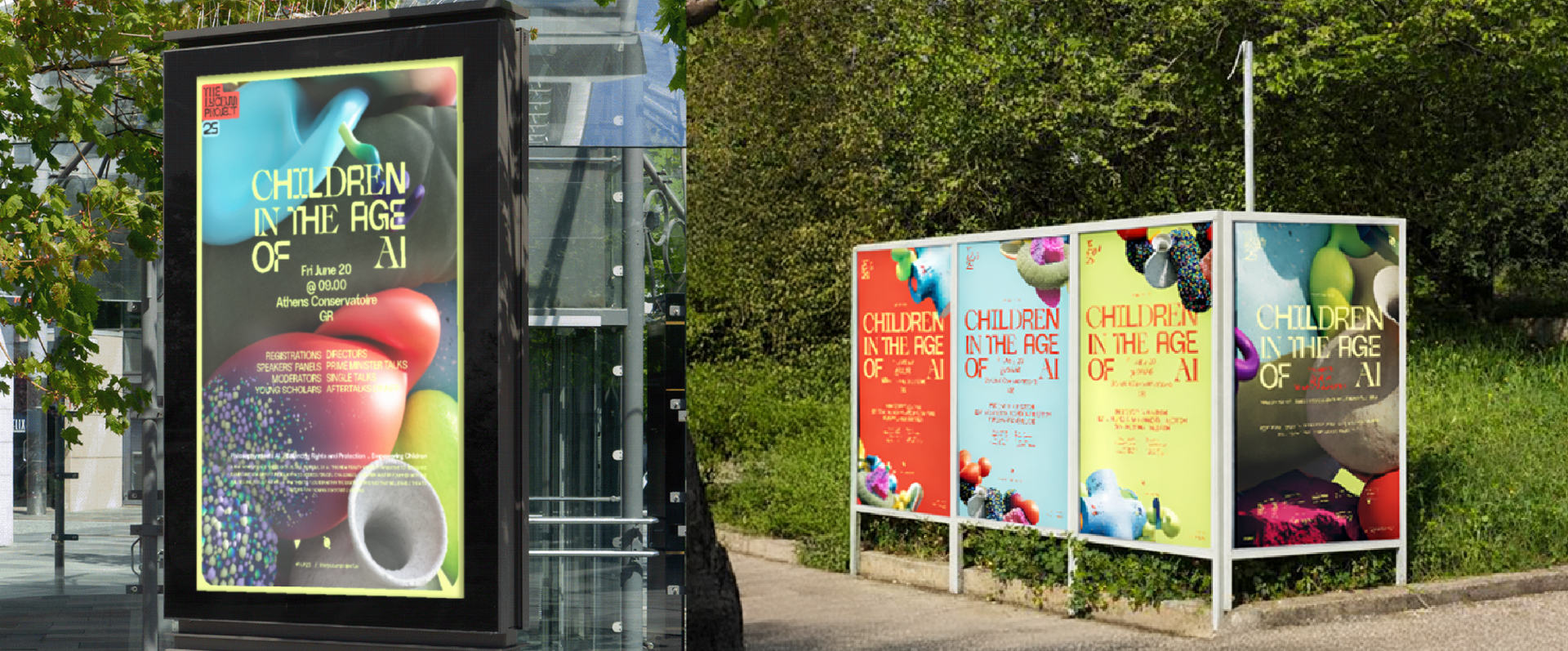 The Lyceum Project is an annual multidisciplinary initiative held beside Aristotle’s ancient Lyceum, where philosophy meets artificial intelligence. For its 2025 edition, Children in the Age of AI, the visual identity places children at the center, inspired from their play, imagination, and creativity. Built as a modular system of forms and colors around a typographic core, the identity expresses balance and transformation, blending dreamlike elements, fragments of antiquity, and digital symbols to reflect the coexistence of heritage and emerging technology in a constantly evolving future.
